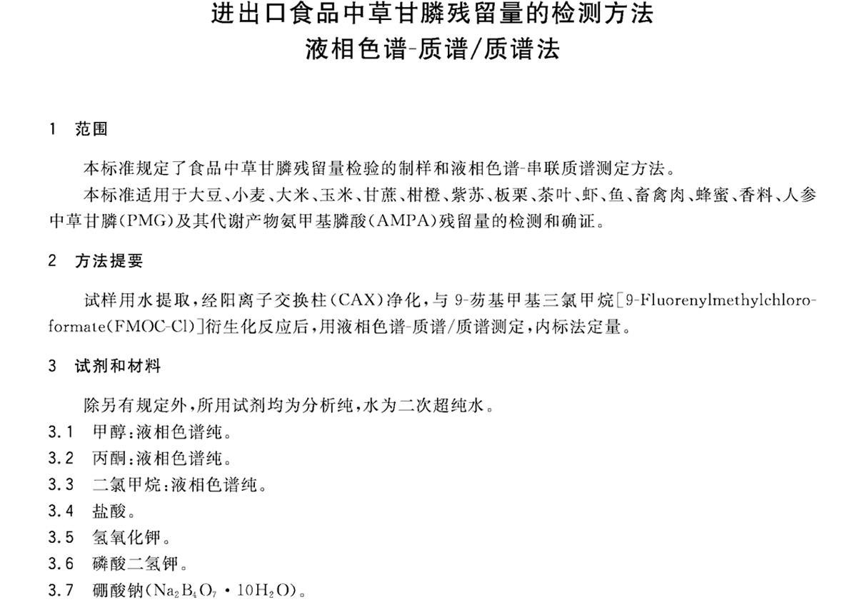SN/T 1923-2007进出口食品中草甘膦残留量的检测方法