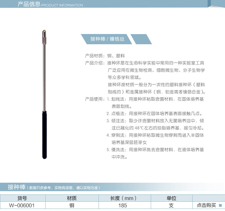 纯铜镀镍接种棒