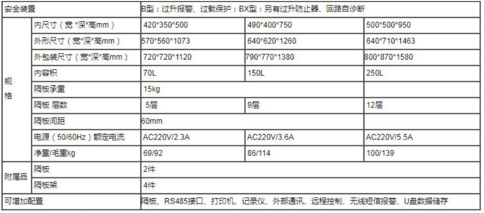 使 用温度范围 0~65℃ 温度分布精 度 ±1℃ 70L 150L 250L