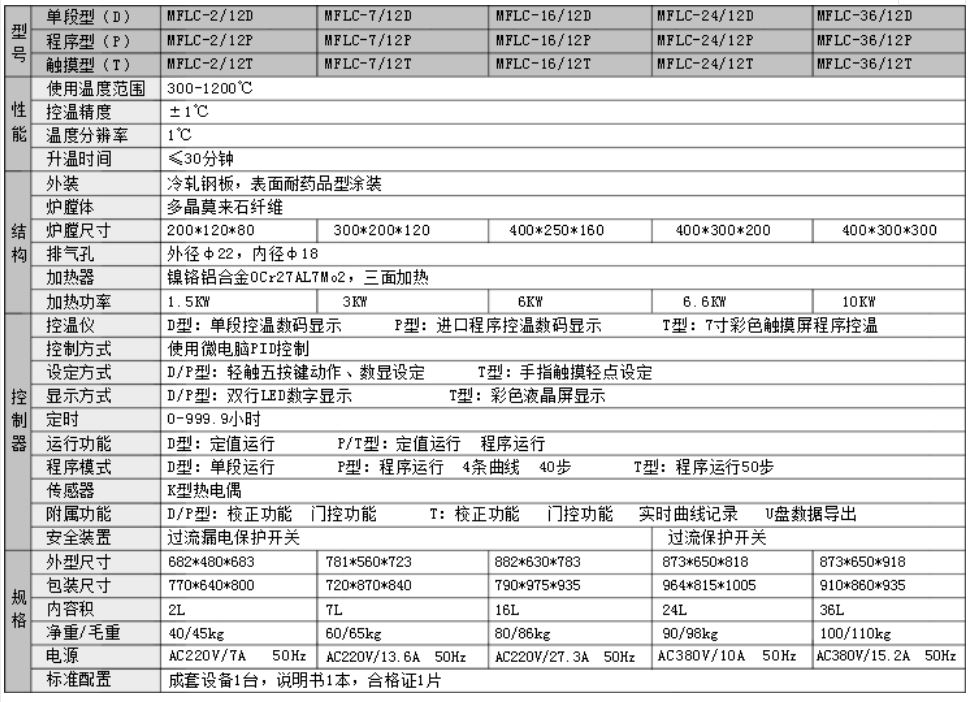 使用温度范围 300~1200℃ 温度控制精度 ±1℃ 内容积 2L 7L 16L 24L 36L
