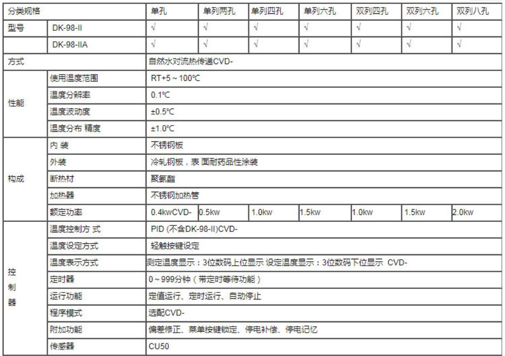 使用温度 RT+5~100℃ 温度分布精度 ±1.0℃ 内容积 3.4L 6.6L 13.2L 19.1L 12.7L 18.7L 24.8L