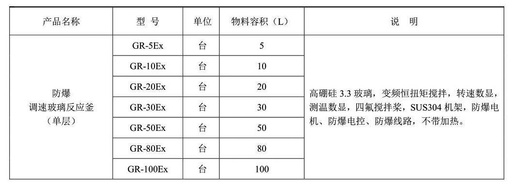 长城 防爆调速玻璃反应釜(单层) |