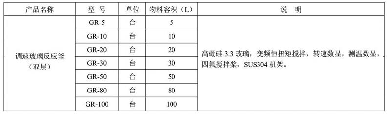 主要是用于物料合成、蒸馏、浓缩等实验。釜体结构分为单层、双层及三层三种类型。根据需要可将釜内抽至负压状态,满足实验条件。通过调节恒压漏斗或加料瓶上的调节阀控制物料均匀滴加。利用冷凝器的热交换功能蒸馏回收反应产物。双层调速玻璃反应釜的釜体具有内、外两层。通过向夹层内注入一定温度的循环液,调节釜内物料温度。三层调速玻璃反应釜有两层玻璃夹套。内层夹套用于通入一定温度的循环液,调节釜内物料温度。外层夹套用真空泵抽至真空状态,实现保温功能。
