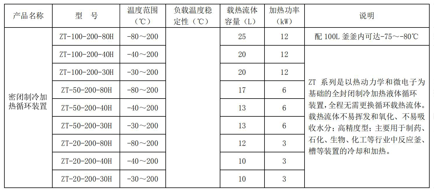 | 特点 | 能够提供冷源和热源的循环装置,工作范围宽,用于制药、化工、生物等行业,为反应釜、槽等提供热源和冷源,也可用于其他设备的加热和冷却。 |