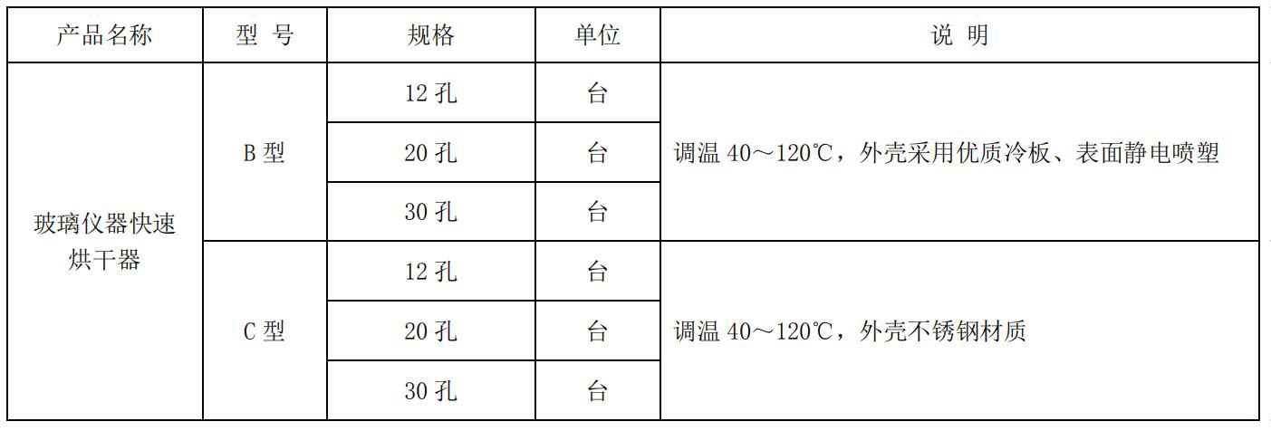 本烘干器适用于使用玻璃仪器的各类实验室、化验室干燥玻璃仪器的必备设备。填补了国内空白,它具有快速、节能、无水渍、使用方便、维修简单等优点。